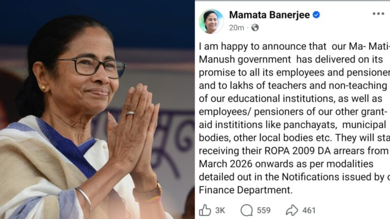 পশ্চিমবঙ্গ মার্চ থেকেই বকেয়া ডিএ পাবেন রাজ্য সরকারি কর্মীরা: ঘোষণা মুখ্যমন্ত্রী মমতা বন্দ্যোপাধ্যায়ের Sumit DeyMarch 15, 20260 সুমিত দে,কলকাতা: দীর্ঘ আইনি প্রক্রিয়া ও একাধিক প্রশাসনিক জটিলতার মধ্যেই রাজ্য সরকারি কর্মী ও অবসরপ্রাপ্তদের জন্য বকেয়া মহার্ঘ ভাতা (ডিএ)…