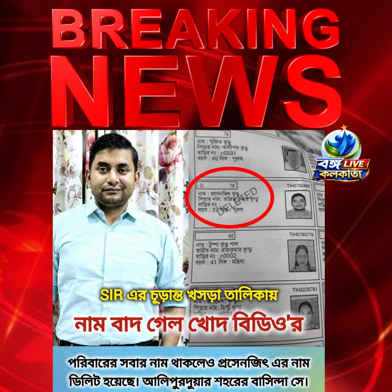 অভিযোগ অনুযায়ী, প্রকাশিত তালিকায় তাঁর পরিবারের অন্যান্য সদস্যদের—বাবা, মা ও স্ত্রীর—নাম থাকলেও কেবলমাত্র তাঁর নামই ‘ডিলিটেড’ দেখানো হয়েছে। বিষয়টি সামনে আসতেই ভোটার তালিকার যথার্থতা ও ত্রুটি নিয়ে নতুন করে প্রশ্ন উঠতে শুরু করেছে।
