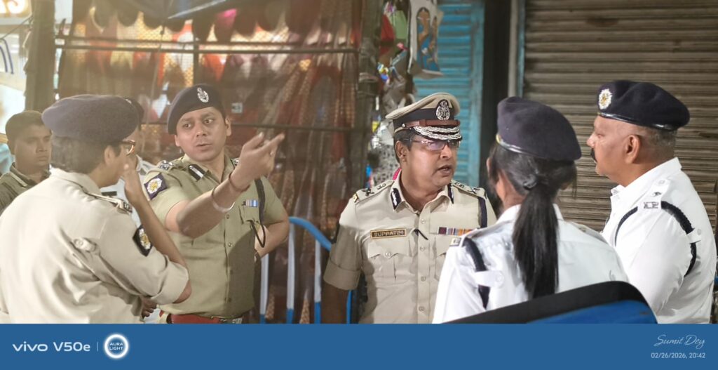 সুমিত দে,কলকাতা:বৃহস্পতিবার সন্ধ্যায় শহরের ব্যস্ততম চত্বর ধর্মতলায় হঠাৎই দেখা গেল শীর্ষ পুলিশকর্তাদের উপস্থিতি। নেতৃত্বে Supratim Sarkar। তাঁর সঙ্গে ছিলেন ট্রাফিক বিভাগের জয়েন্ট সিপি এবং একইসঙ্গে কলকাতা পুলিশের ক্রাইম বিভাগের দায়িত্বপ্রাপ্ত জয়েন্ট সিপি (ক্রাইম) আইপিএস Rupesh Kumar। এছাড়াও উপস্থিত ছিলেন সেন্ট্রাল ডিভিশনের ডিসি Indra Mukhopadhyay, এসিপি Prosenjit Bhattacharya, Hare Street Police Station-এর ওসি Satyabrata Dasgupta, সার্জেন্ট Shubhankar Chatterjee-সহ ট্রাফিক ও থানা পুলিশের একাধিক আধিকারিক।