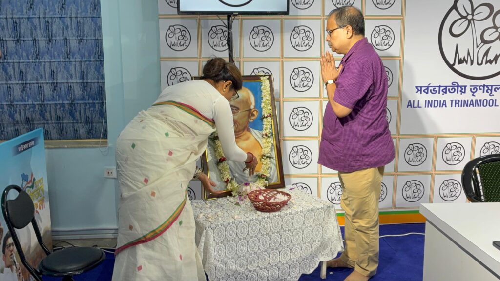 তৃণমূল কংগ্রেসের নেত্রী ডা. Shashi Panja এবং দলের মুখপাত্র Kunal Ghosh আজকের প্রেস কনফারেন্সের আগে জাতির জনককে শ্রদ্ধার্ঘ্য অর্পণ করেন।