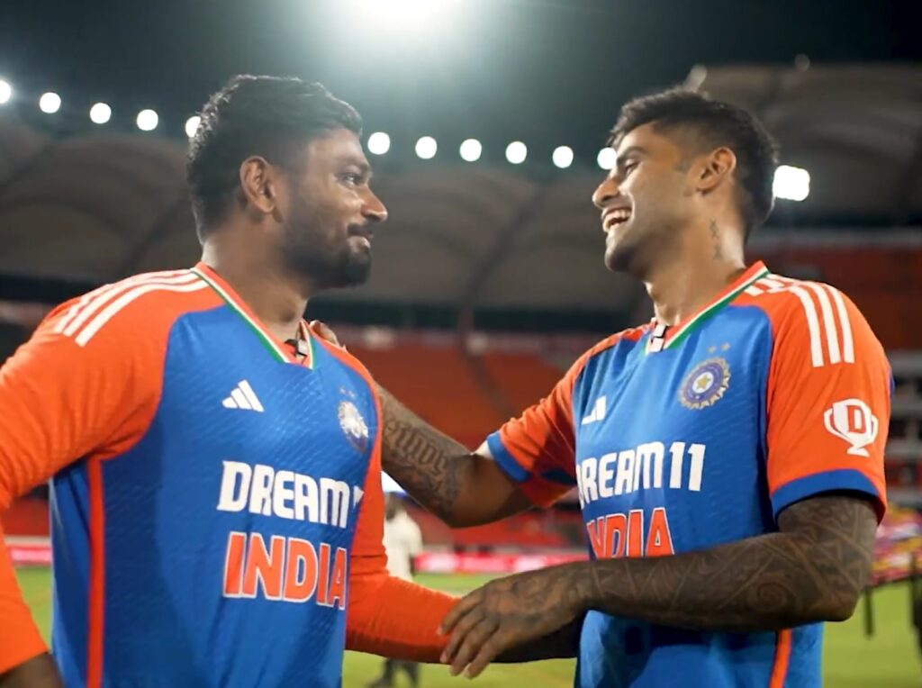 ম্যাচ জয়ের পর ড্রেসিংরুমে ফেরার পথে আবেগঘন দৃশ্য ধরা পড়ে। ভারত অধিনায়ক Suryakumar Yadav টুপি খুলে সঞ্জুকে কুর্নিশ জানান। ভাইরাল হওয়া ভিডিওতে দেখা যায়, সঞ্জু এগিয়ে এসে অধিনায়ককে জড়িয়ে ধরেন।